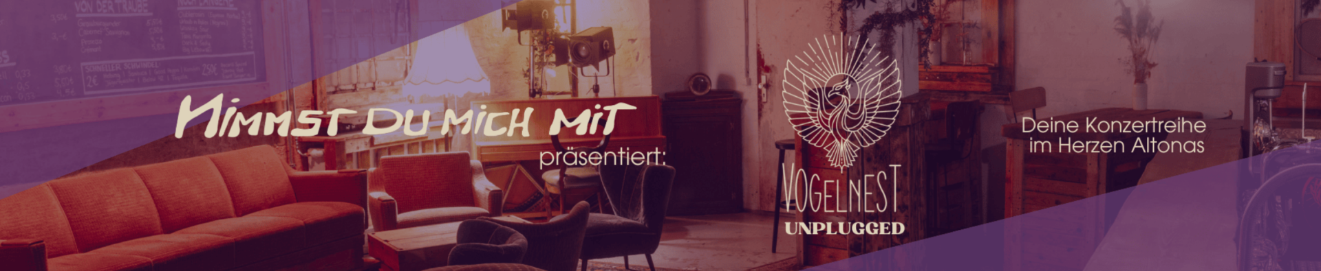 Mit dem Vogelnest haben wir dafür den idealen Ort. Versteckt im Herzen Altonas und liebevoll als unser „Wohnzimmer“ bezeichnet, empfängt der Raum das Publikum mit urigem Charme: Omas Sofas, weiche Sessel, warme Lampen und eine intime Bar, an der man sich schnell zu Hause fühlt. Hier entsteht ein Rahmen, der nicht nur Konzertlocation ist, sondern Begegnungsraum – zwischen Künstler:innen und Publikum, zwischen Musik und Moment.
